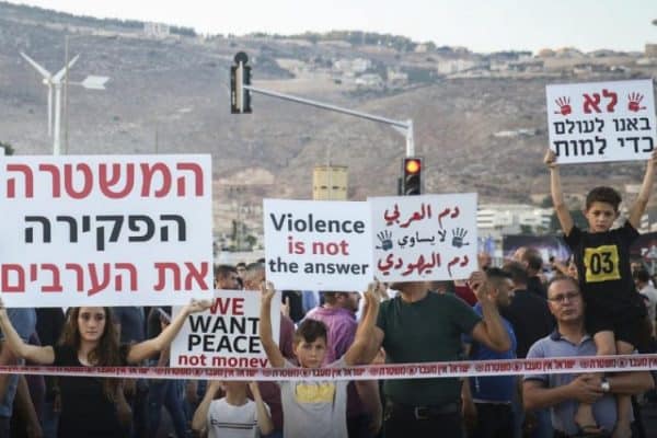 תנועת עומדים ביחד, של יהודים וערבים, הוציאה במהלך "השבת השחורה" (12 אוקטובר), עוד אחת, הודעה על אירוע מחאה שייערך הערב בטמרה, הפגנה, "נגד בריחת הממשלה מאחריותה להתמודדות עם האלימות והפשע בחברה הערבית". בהודעה הם מצטטים את הדיווחים על ארבעת האירועים הקשים – רצח, בעארה, חיסול חשבונות בחיפה, פרוטקשן פלילי מוניציפלי ברהט ופרוטקשן פלילי פוליטי ברמלה. האירועים הללו, שמכאיבים לרבים בחברה הערבית ומורטים את העצבים לחברה היהודית, מתזזים גם את מערכות אכיפת החוק, המשטרה ושירות בטחון כללי שבעל כורחו מתחיל להיכנס לתמונה.