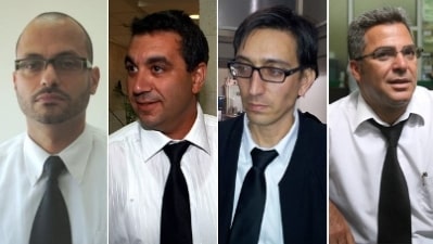 מצד אחד צוות ההגנה – עו"ד יורם שפטל, עו"ד רצון דרחי, עו"ד משה סוחמי, עו"ד תמיר סננס ועו"ד טל ליטן.