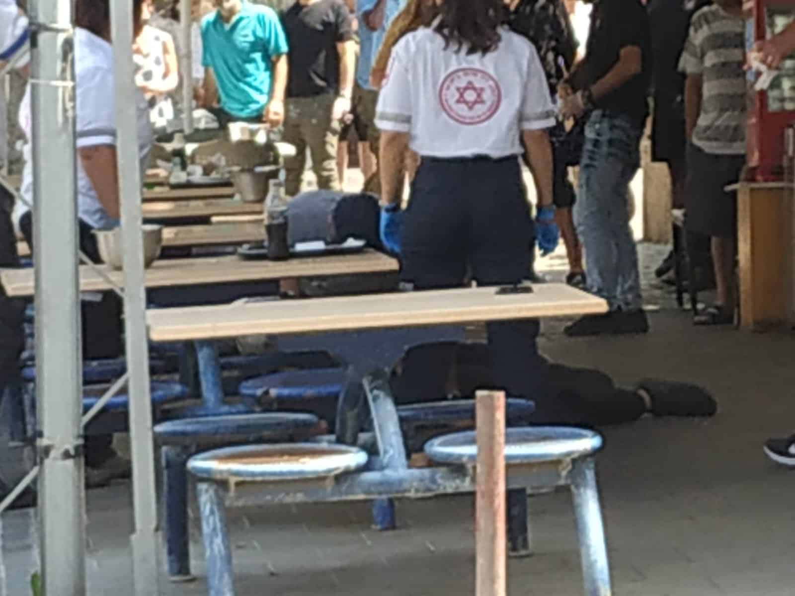 ממד"א נמסר כי חובשים ופראמדיקים של מד"א העניקו במקום טיפול רפואי לגבר בן 23 (התוקף) אשר פונה במצב קל עד בינוני לבית חולים. כתבת "פוסטה" שנקלעה למקום דיווחה כי על פי עד ראיה, הפצוע נשמע אומר, בעודו שרוע על הרצפה: "מה עשיתי, איך הסתבכתי?" על פי תושבת האזור, במקום נשמעו שלוש יריות.