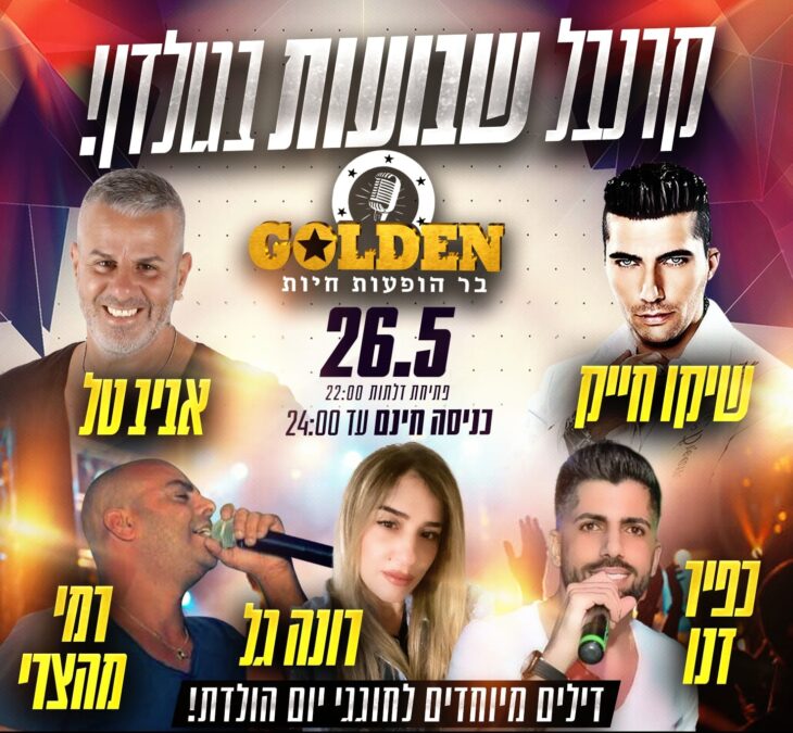 קרנבל שבועות בגולדן. שיקו חייק, אביב טל, כפיר דנו, רונה גל, רמי מהצרי.