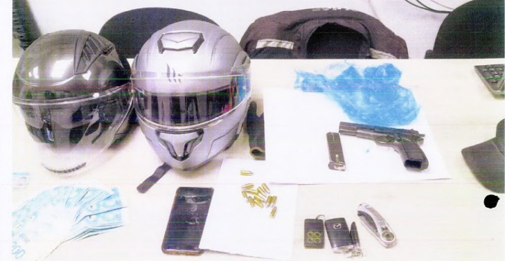 בחיפוש שערכו הבלשים הם מצאו תעודה מזהה של הנאשם, ולא רק זאת, אלא גם אקדח 9 מ"מ ובתוכו מחסנית עם 13 כדורים תואמים. כל אלה היו בתוך כפפה שחורה שהוחבאה מתחת למושב הנוסע הקדמי.