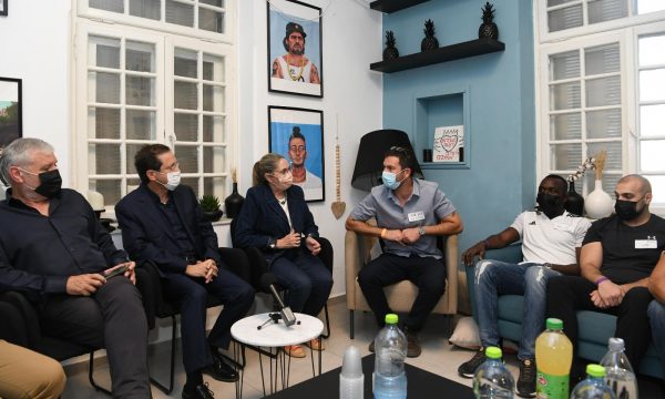 הרצוג ושר הרווחה מאיר כהן בבית שוש"ן – מרכז לשיקום אסירים צעירים בירושלים