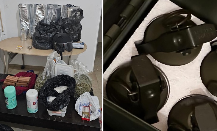 במהלך חיפוש בבית חשפו השוטרים רימוני רסס, חלקי מטענים ותחמושת של אקדח, שלפי החשד הוסלקו כהיערכות לביצוע .