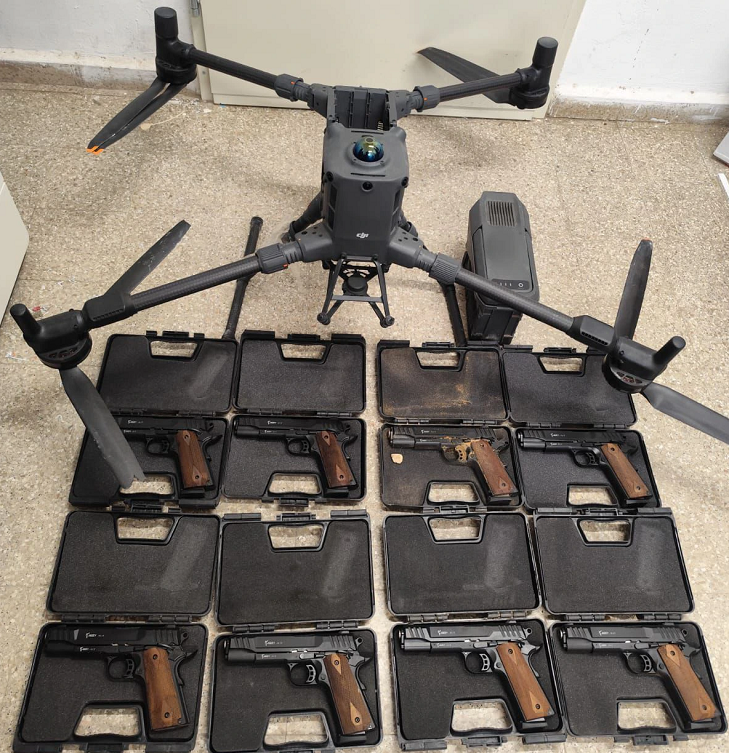החל משנת 2025 ועד למועד הגשת כתב האישום, נתפסו 90 אקדחים שהוברחו באמצעות רחפנים מגבול ירדן, בעוד שבגבול מצרים סיכל צה"ל עשרות רחפנים עליהם נתפסו כלי נשק מסוגים שונים, כגון רובים, מקלעים, אקדחים ותחמושת.
