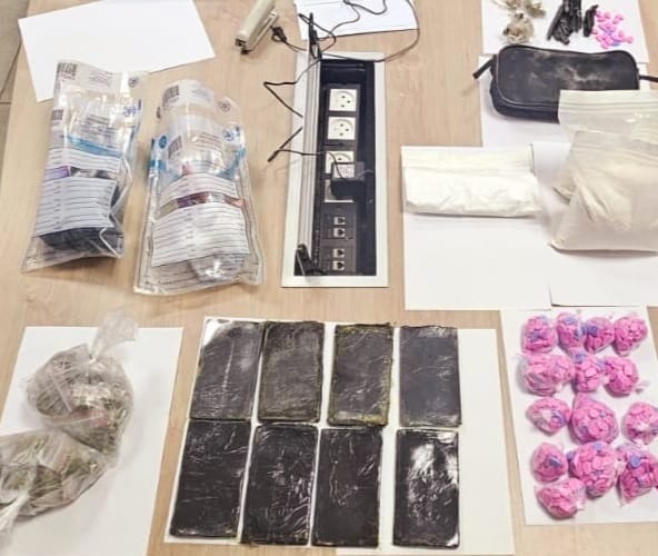 לפי המשטרה, נתפסו יותר מקילוגרם קוקאין, יותר מקילוגרם קנאביס ן-900 כדורי אקסטזי.