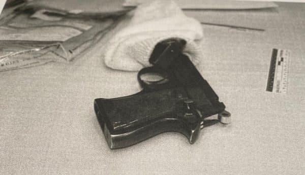 לפי כתב האישום המקורי נגדם, ב-22 במאי הם החזיקו אקדח טעון במחסנית ובה שבעה כדורים, עטוף בגרב ומוסלק בין הבגדים שבארון הבגדים בחדר השינה של האב.