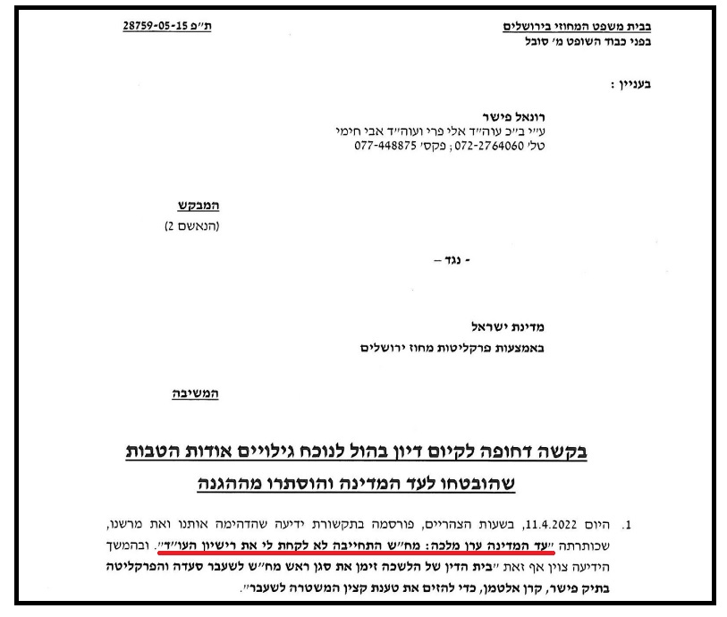 קצין המשטרה לשעבר ערן מלכה, עד המדינה נגד רונאל פישר ורות דוד, מבקש להקפיא את ההליכים בבקשת לשכת עורכי הדין לשלול את רישיונו.