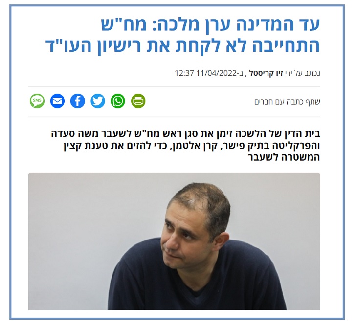 "אורי כרמל (מנהל מח"ש דאז, ז.ק) אישר, לא אני", טען סעדה.