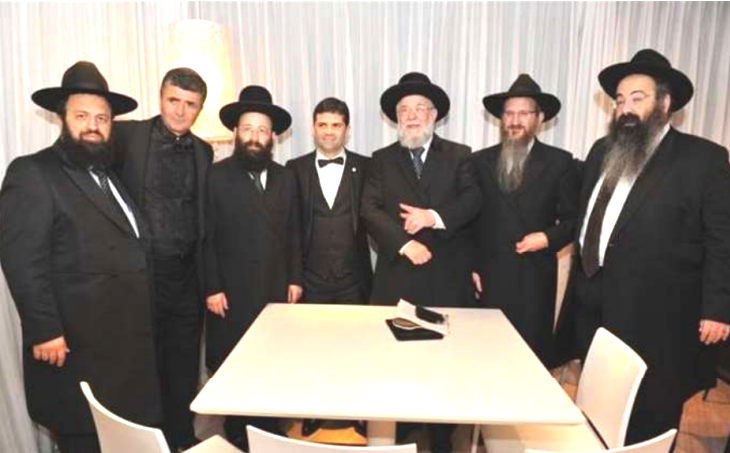 מיכו ושבתאי עם קבוצת רבנים בכירים. "כאשר שאלתי מדוע הוא תורם דווקא לעמותות חרדיות הסביר לי מיכו כי מדובר בהשקעה"