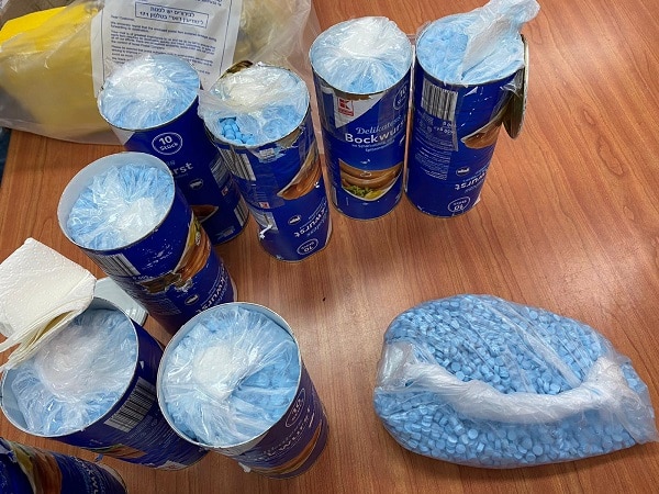 אלפי כדורי MDMA בקופסאות שימורים (ארכיון: משטרת ישראל)