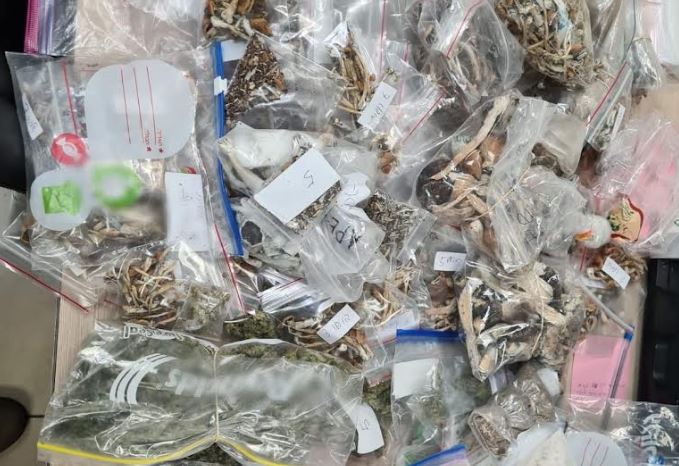 - חומר החשוד כפטריות הזיה במשקל של 812 גרם.