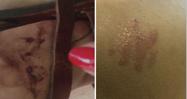סימנים על גופה של האשה, לטענת כתוצאה מהאגרסיביות של השוטר באירוע (פרטי)