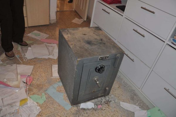 עם כניסתו, עקר אוגינסקי את הכספת אשר הייתה מוצמדת לקיר חדר הארונות ממקומה ושבר את מנגנון נעילתו. על פי הנטען, גנבו הנאשמים מתוך הכספת כסף ישראל בסכום כולל של 1.38 מיליון שקלים, 80 אלף דולר, 400 יורו ותכשיטים שכללו שתי טבעות ושרשרת זהב.