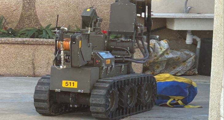 המשטרה הגיעה במהירות למקום כולל חבלן שנכנס לפעולה עם רובוט משטרתי אשר הדהים את האנשים בתכולה שהייתה בתוך התיק.
