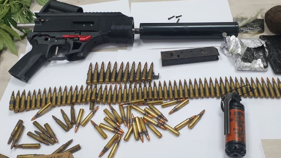במהלך החיפוש נתפסו אמצעי לחימה, שהיו מוסלקים בתוך גג רעפים ביתו, ואשר כללו נשק מאולתר עם משתיק קול, רימון הלם, מחסניות ותחמושת מסוגים שונים. בנוסף, נתפס בביתו סם מסוג חשיש במשקל של כ-800 גרם.