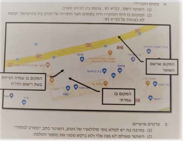 בין היתר נטען כי המיקום בו נכתב הדו"ח שונה מהמיקום שנרשם בגופו, כך גם לגבי צבע הרכב * הנאשם: "החלטתי לנהל משפט ולא לוותר, מדובר בעניין עקרוני"