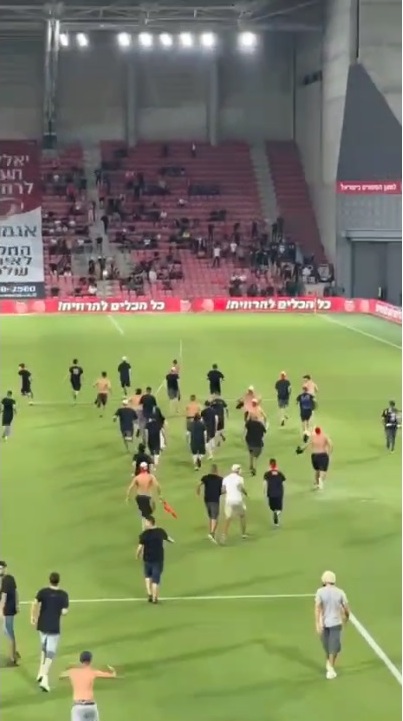 במקביל, אוהדי הקבוצה הצפונית, שחלקם ירדו לכר הדשא, השיבו באלימות מצידם.