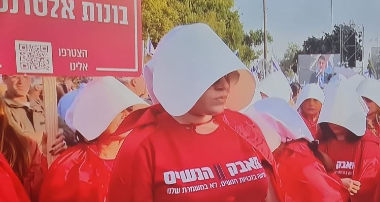 מחאת הנשים נגד הרפורמה המשפטית, בהשראת סיפורה של שפחה (צילום מסך)