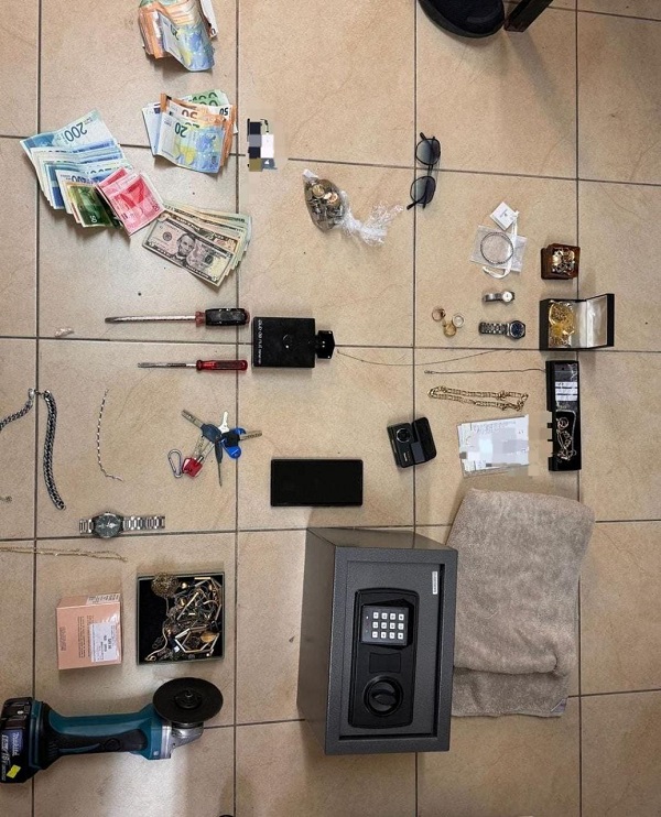 בין הרכוש שנתפס ברשותו – כספת ובתוכה אקדח ומחסנית טעונה בתחמושת, אשר נגנבו לפי החשד בפריצה שביצע בסמוך לכך. נתפסו גם כלי הפריצה.