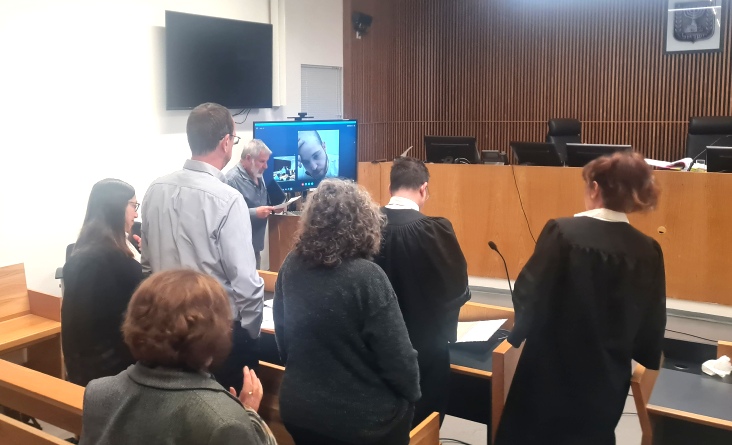 גלבוע בסיום העדות, הנאשם עמית אלמוג בוידאו מהכלא (פוסטה)