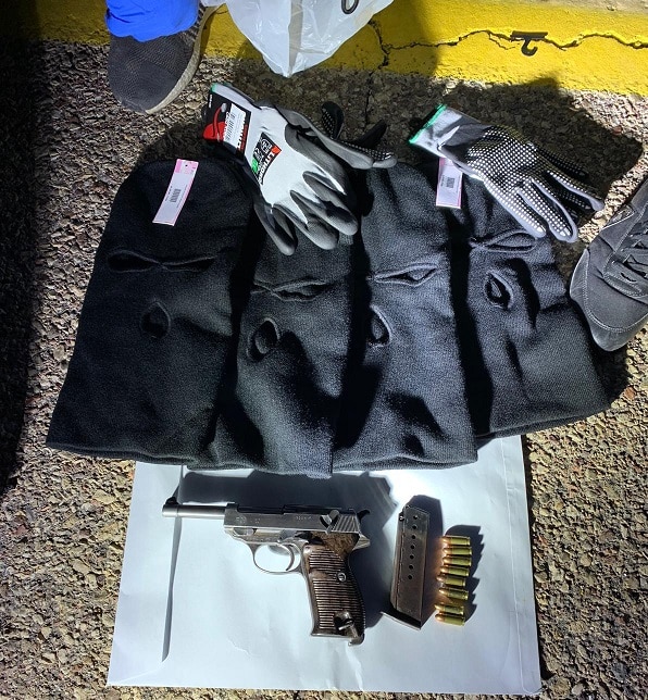 במסגרת חיפוש שנערך ברכב נתפס תיק גב במושב האחורי, שהכיל את הנשק והתחמושת. מתחת לבלם היד נתפסה שקית עם הסמים. כמו כן, בתא המטען של הרכב נתפסו שני שכפ"צים, כפפות, כיסויי פנים ושני מכשירי מעקב מסוג GPS.