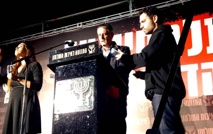 "ביבי. תפקח עיניים. תתעורר. המציאות שונה לחלוטין. יש כאן שמאלנים, ויש כאן אנשי מרכז. אבל גם יש כאן המון רב של אנשי ימין שפויים והגונים. יהודים. ערבים. אשכנזים. ספרדים. חילונים. דתיים. להט"בים וסטרייטים. קשישים. וצעירים. עשירים. עניים. ממרכז הארץ ומהפריפריה. כל מגוון הקשת היפה של החברה הישראלית. התכנסנו כאן היום בקור ובגשם מסיבה אחת – מאבק על הדמוקרטיה הישראלית. מאבק על מדינה שיש בה חירות ושוויון, מאבק על מדינה שיש בה זכויות אדם. זהו מאבק בו כולנו באחווה. במאבק הזה כולנו אחים!