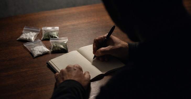 השוטרים תפסו בבית גם ראיה מפלילה משמעותית: הסתבר כי הנאשם תיעד את מכירות הסמים, והחזיק יומן רישומים שבו מצאו השוטרים את שמות הקונים, סוגי סמים ומחירים.