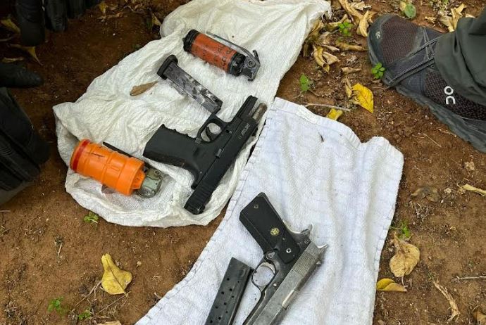 במהלך החיפוש תפסו הבלשים שני אקדחים ואקדח נוסף המשמש כאקדח הזנקה, שלושה רימוני הלם , תחמושת רבה בתפזורת ומעל שני ק"ג סמים מסוגים שונים כגון – קריסטל, דוסה, MDMA, חשיש ומריחואנה. בנוסף נתפסו שקיות חלוקה למנות הסם ורשימה לניהול חשבונות ה"לקוחות" שצרכו סמים.