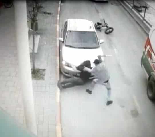 בכתב האישום נטען, כי בשלב הזה בן שושן ניגש לרכבו, הוציא חפץ מסוים ורדף אחר מ"ק, שבתגובה ריסס בגז פלפל לעבר פניו של בן שושן והשליך לעברו את החפץ בשתי הזדמנויות. בן שושן ניגש לרכבו, הוציא מתוכו מקל גולף והחל לרדוף אחר מ"ק סביב הרכב. בשלב מסוים היכה בראשו ובגבו של מ"ק, שנפל ארצה. בן שושן, כך נטען, המשיך להכותו עד שהמקל נשבר מעוצמת המכות. לאחר מכן בעט בראשו ודרך עליו, עד שעובר אורח הרחיק אותו.
