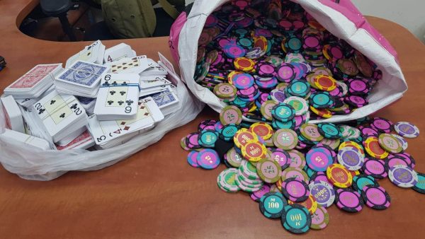 השוטרים תפסו קלפים ואסימוני הימורים (ז'יטונים) שהיו מונחים על שולחנות המשחק, וכן נתפסו עשרות אלפי שקלים במזומן ומטבע זר. חשוד (תושב צפון הארץ, בשנות ה – 20 לחייו) בניהול וארגון של המקום ומשחקי המזל, נעצר והובא בפני בית המשפט ששחרר אותו בתנאים מגבילים.