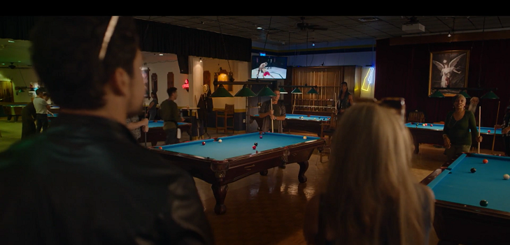 אחד משחקני הביליארד הקבועים במקום מפתיע את מיטשל ומציע לה לשחק.