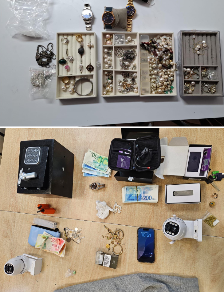 בנוסף נתפסו במקום סמים מסוגים שונים, כסף מזומן שמקורו לפי החשד בפעילות פלילית, תכשיטים רבים, וכלי פריצה שלפי החשד שימשו את החשודים בביצוע ההתפרצויות במהלך החודש האחרון.