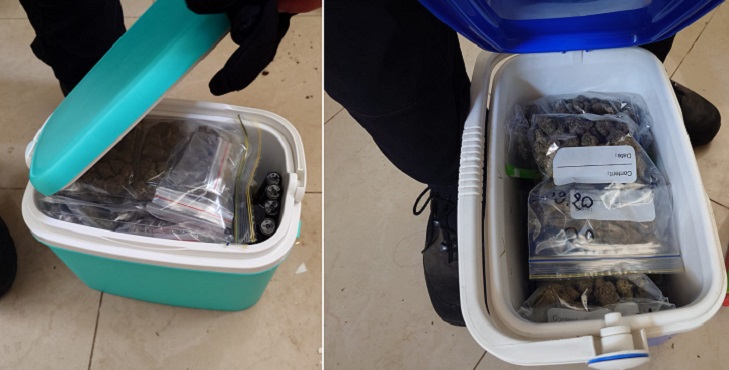 לאחר שהתקבל אישור לפעולה, הבלשים נכנסו לדירה וחשפו חומר החשוד כמריחואנה במשקל של כשבעה ק"ג, סיגריות, חומר חשוד כחשיש, ובקבוקונים עם שמן חשיש.