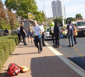 חובש בכיר רכוב על אופנוע מד"א אלחנן מאמו סיפר: "על המדרכה בסמוך לתחנת האוטובוס שכבה הפצועה כשהיא מחוסרת הכרה עם חבלת ראש קשה ואזרח מעניק לה טיפול רפואי ראשוני בהדרכה טלפונית של מוקד מד"א. אנשים שהיו במקום סיפרו לנו שהיא נפגעה מהאוטובוס שעמד במרחק של מספר מטרים מאיתנו. הענקנו לה טיפול רפואי מציל חיים שכלל הנשמה ועצירת דימומים והיא פונתה במצב קריטי לבית החולים כשהיא מונשמת."