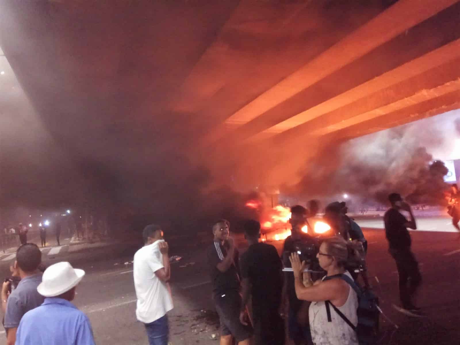 על פי הערכות, המשטרה לא מפזרת בשלב זה את המפגינים על מנת לא לגרום למהומות בזמן מהדורות החדשות של השעה שמונה בערב. בשלב זה על פי הדיווח מהשטח סגור הכביש שבין קרית חיים לאזור המהומות. לקראת השעה שמונה, עם התמקמות צוותי הטלוויזיה, התגברו קריאות המחאה והקצינו, ובשלב מסוים אף הובערה אש ממש מתחת לגשר, שבערה מתחת לקורות הגשר, מבלי התערבות של המשטרה.
