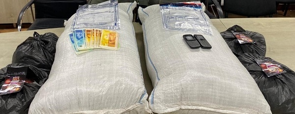 שוטרי משמר הגבול תפסו שני חשודים שהיו בדרכם לאילת עם שני שקים גדולים מלאים בכ-12.4 ק"ג חומר צמחי החשוד כסם מסוג נייס גאי.