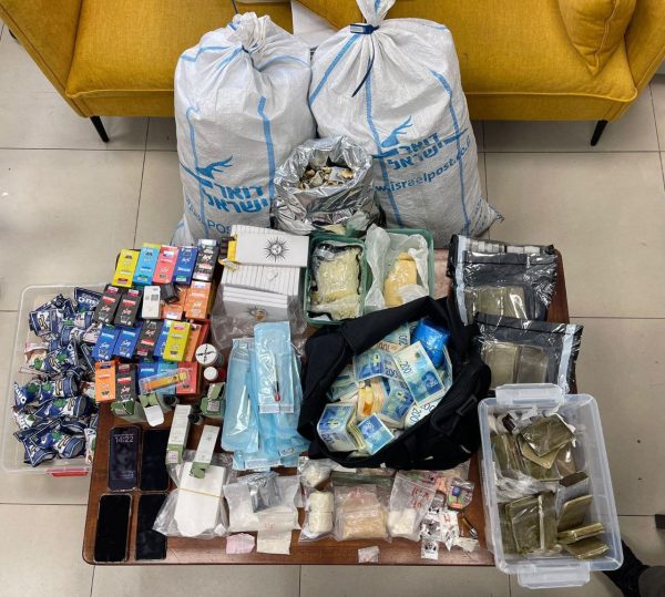 לצד הסמים, נתפסו בדירה: ארבעה טלפונים סלולריים, משקל אלקטרוני, 37 קרטונים, כרבע מיליון שקלים ו – 700 אירו.