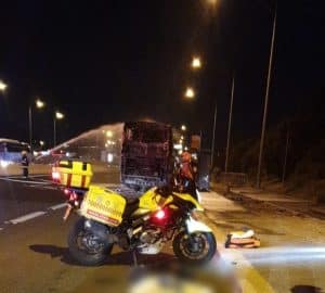 יחיאל רוזנברג חובש איחוד הצלה סיפר: "מודבר בתאונה עם מעורבות אוטובוס ואופנוען שנפצע אנושות. ביצענו בו פעולות החייאה בזירה בניסיון להציל את חייו, אך בסיומן למרבה הצער נקבע מותו בזירה. האוטובוס עלה באש עקב התאונה ונוסעיו באורח נס יצאו ללא כל פגע".