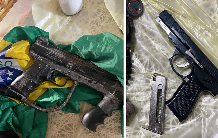 במהלך פשיטה על מתחם מגורים של צעיר בן 20 נתפסו מספר אקדחים ורובים מסוג איירסופט המסווגים כצעצועים מסוכנים, שני כדורי ציד, וכן טלפון אשר שימש לפי החשד לתקשורת מוסלקת.