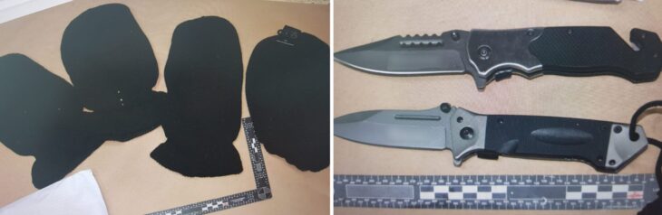 נתפסו גם סכינים וכובעי גרב, אבל לא האקדחים ששימשו לביצוע העבירות
