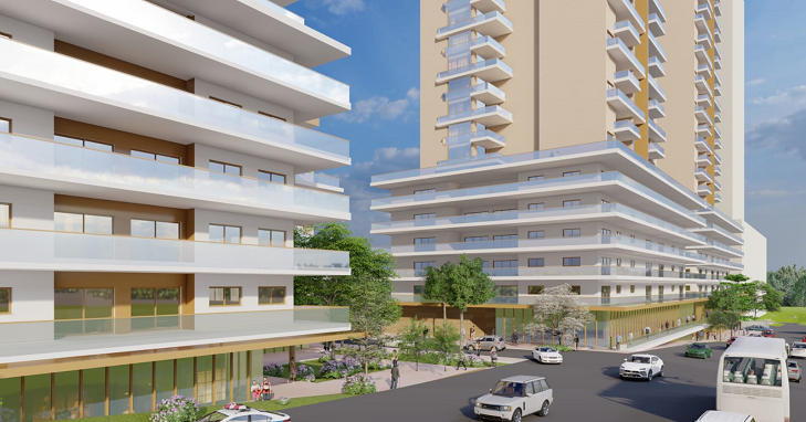 התוכנית שנערכה על ידי אדריכל אריה מאייר כוללת גם קומת מסחר בהיקף של 5,000 מ"ר, לצד מבני ציבור בהיקף של כ-1,050 מ"ר.