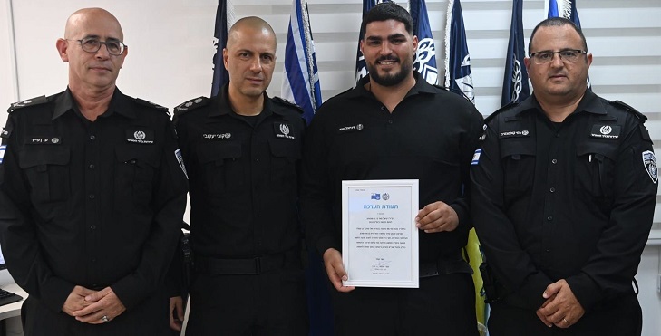 תעודת הערכה ללוחם שב"ס שנטרל את המחבל בפיגוע בתחנה המרכזית בבאר-שבע