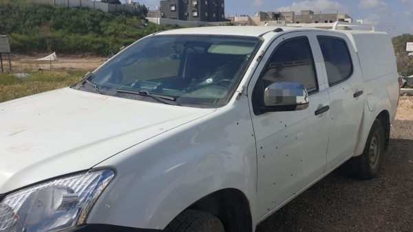 אחד מכלי הרכב שנפגעו מהירי (צילום: משטרה)