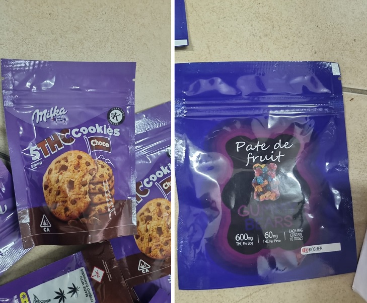 לפי המשטרה, בלשי משטרת גלילות יחד עם לוחמי יס"מ תל אביב ביצעו חיפוש בדירה בחולון, במהלכו איתרו מדפים מלאים במוצרים החשודים כסמים מסוגים שונים: כ-18 ק"ג מריחואנה וחשיש, וממתקים ומוצרים שונים שבהם שולב לכאורה קנאביס, כגון עוגיות, במבה, דובוני גומי, סיגריות אלקטרוניות, שמן וחמאה.