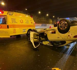 בתאונה אחרת בשעה 04:27 התקבל על מונית שהתהפכה בנתיבי איילון מתחת למחלף השלום לכיוון מחלף לה גוארדיה. חובשים ופראמדיקים של מד"א נאלצו לקבוע את מותו של נהג המונית