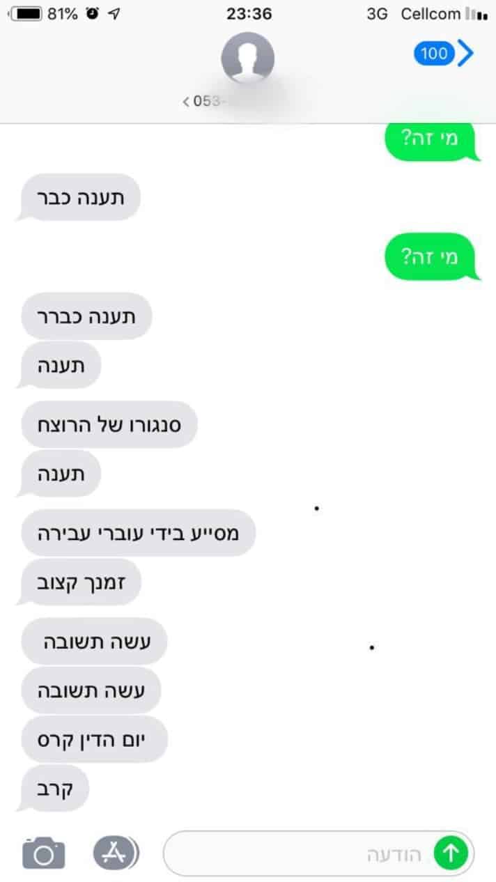 עו"ד מסר: "הלילה נחצו כל הקווים האדומים עת הושמעו איומים על חיי באמצעות הטלפון הנייד והובטח לי שזמני קצוב וזאת לאחר שכוניתי 'סנגורו של הרוצח' ו'מסייע בידי עוברי עבירה'. זוהי אך טעימה קטנה ממה שעובר על מרשי ומשפחתו בימים אלה ויש בכך כדי להאיר במקצת את הסיטואציה בפניה עמד מרשי בעת ששהה בחיק משפחתו בעת שנאלץ בלית ברירה לגונן על חייו וחיי משפחתו". לדבריו, הוא הגיש תלונה למשטרה.