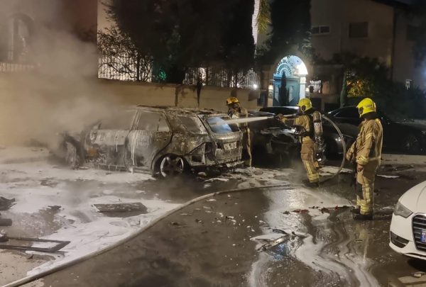 כלי רכב עלו אמש באש בשכונת רמת אפעל ברמת גן (7.2.22).
