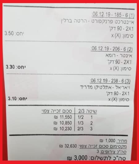 בימים יפים יותר, כמו במקרה הספציפי שהציג התובע, המשחק הציע הימורים על ליגות הספורט הגדולות בעולם. זכייה בהימור על גבי טופס מסוג "שיטה 2/3" מחושבת לפי צמדי משחקים. כך, על גבי הטופס נרשמים שלושה משחקים, אך חישוב הזכייה נערך לפי כל צמד משחקים מתוך השלושה, בנפרד. על גבי הקבלה לתובע נרשם הפרס הצפוי לו בארבעה תרחישים: