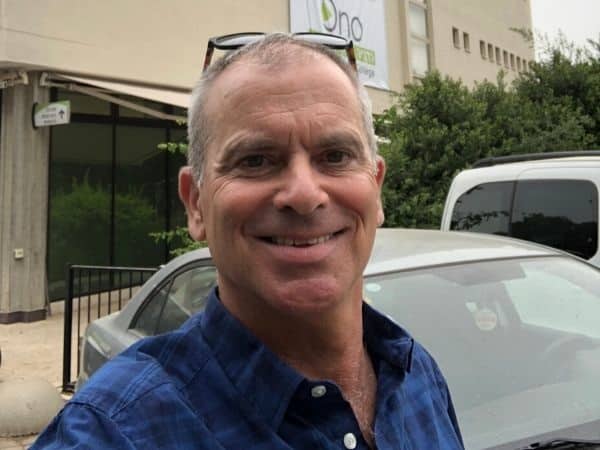 ג׳ואל אלון בכניסה למכללה ללימודי משפטי בקריית אונו (צילום: ג׳ואל אלון)