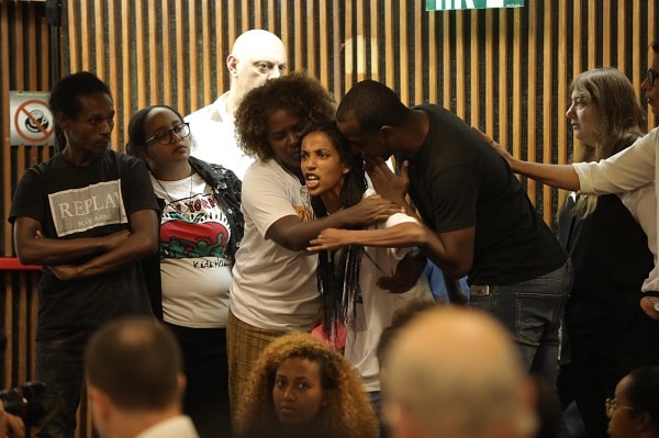 בשלב זה קריאות גנאי נוספות מהקהל הביאו לפיזור האירוע. בתגובה להכרזת ראש הלשכה על כך, הנוכחים החלו לקרוא בשמותיהם של בני הקהילה האתיופית שמצאו את מותם בעקבות היתקלויות עם שוטרים, מיוסף סלמסה ועד סלומון טקה , כאשר אחרי כל שם, הקהל הוסיף במקהלה: "נרצח".